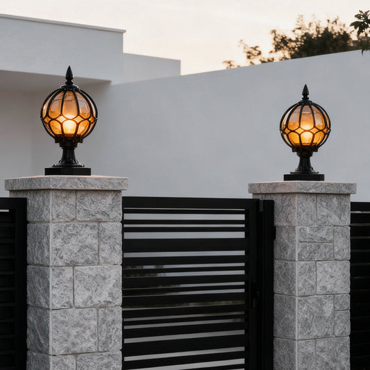 Outdoor Globe Pillar Lights Retro Glass Globe Copper Fence Post Light