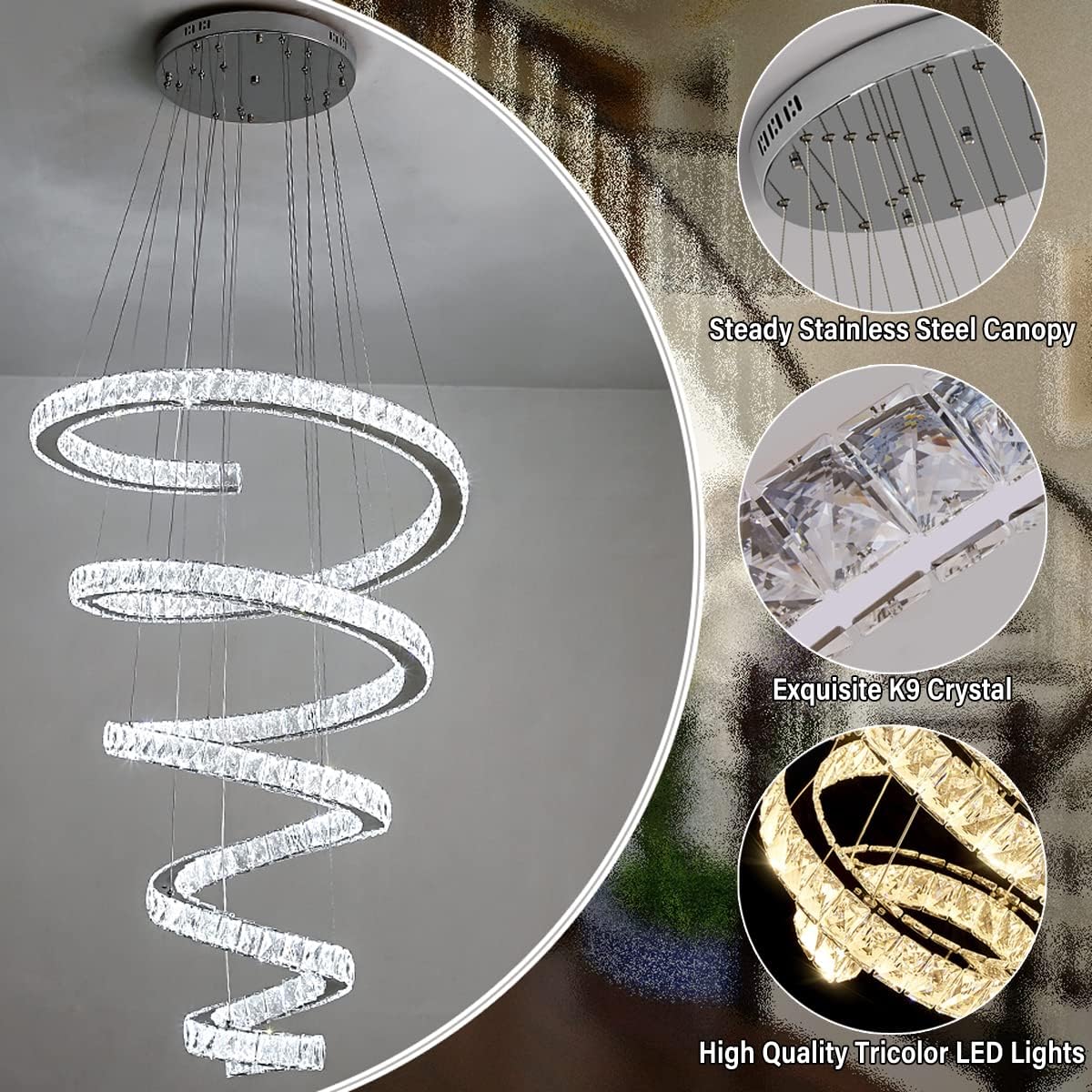 - Contemporary design with crystal accents for added luxury and sophistication